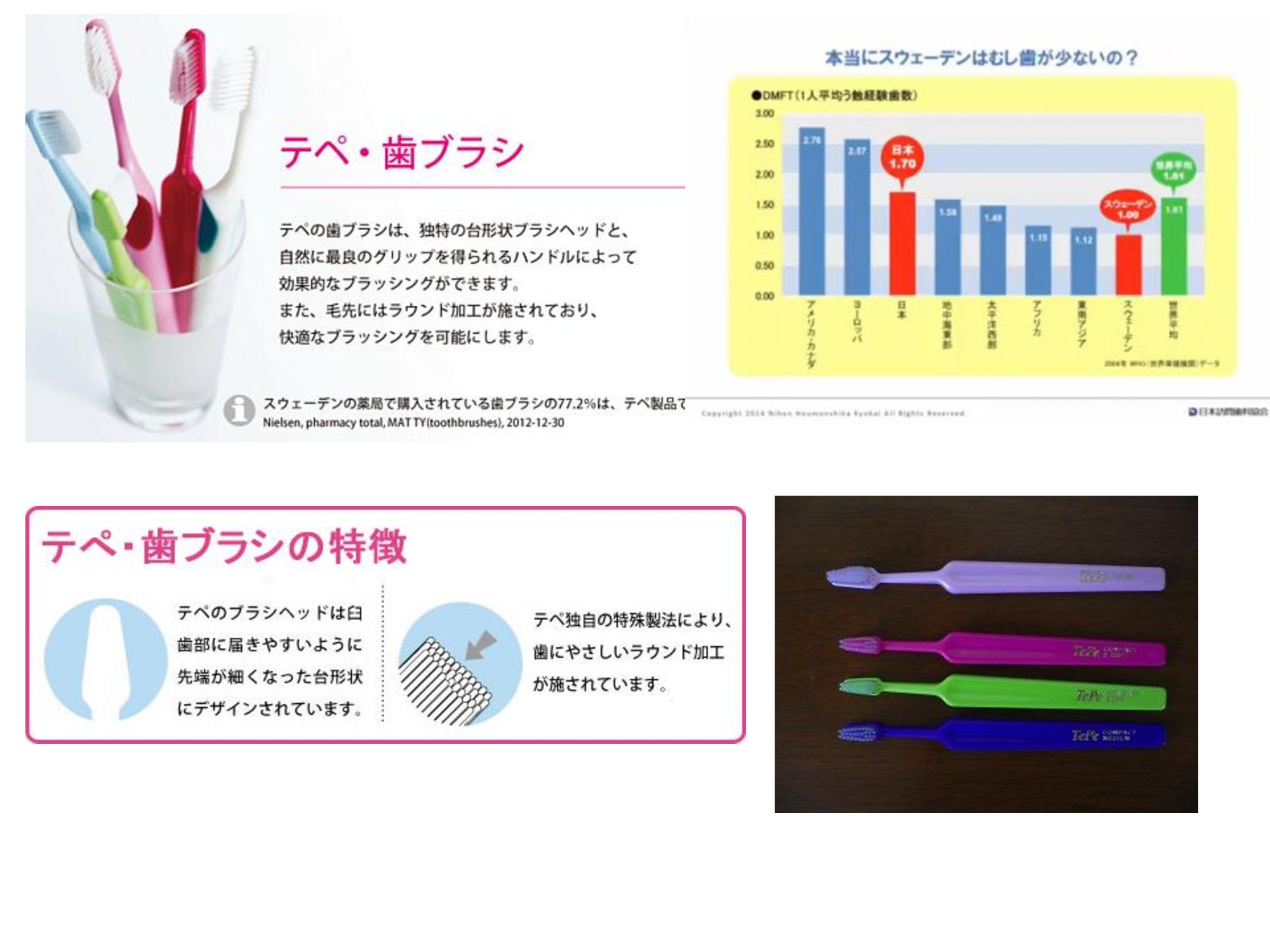 講義では、スウェーデンの予防歯科に関する取り組みの紹介もあり、国によってセルフケア用品の選び方や習慣に違いがあることを学びました。各種歯ブラシや補助清掃用具については、メーカーごとの特長や設計意図を知ることで、患者様への説明に役立つ知識を得ることができました。