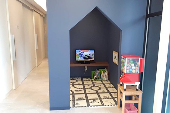 お子さんにも楽しく過ごしていただけるように、待合室の一角にキッズルームがあります。お子さん連れでも可能です。