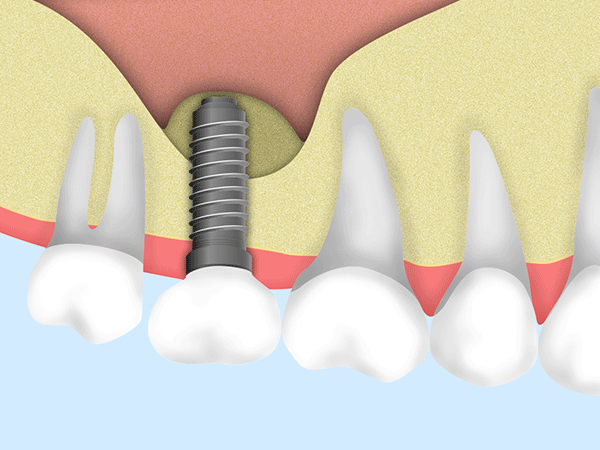 骨誘導再生法ともよばれる処置で顎の骨が不足している部位に骨補填材や自家骨を入れメンブレンという膜で覆い、歯肉を縫合して骨の再生を促す処置です。不足している骨が少なめの場合は、インプラント埋入と同時に行います。