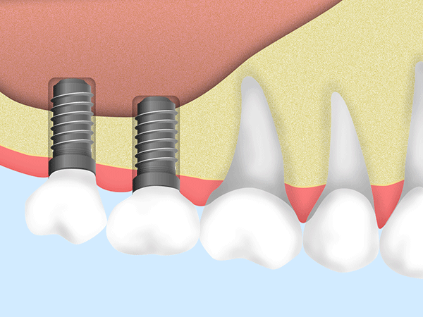 インプラント治療は、顎の骨にインプラント(人工歯根)を埋め込み、その上にセラミック製の人工歯や特殊な入れ歯を装着して歯の機能を補う治療法です。